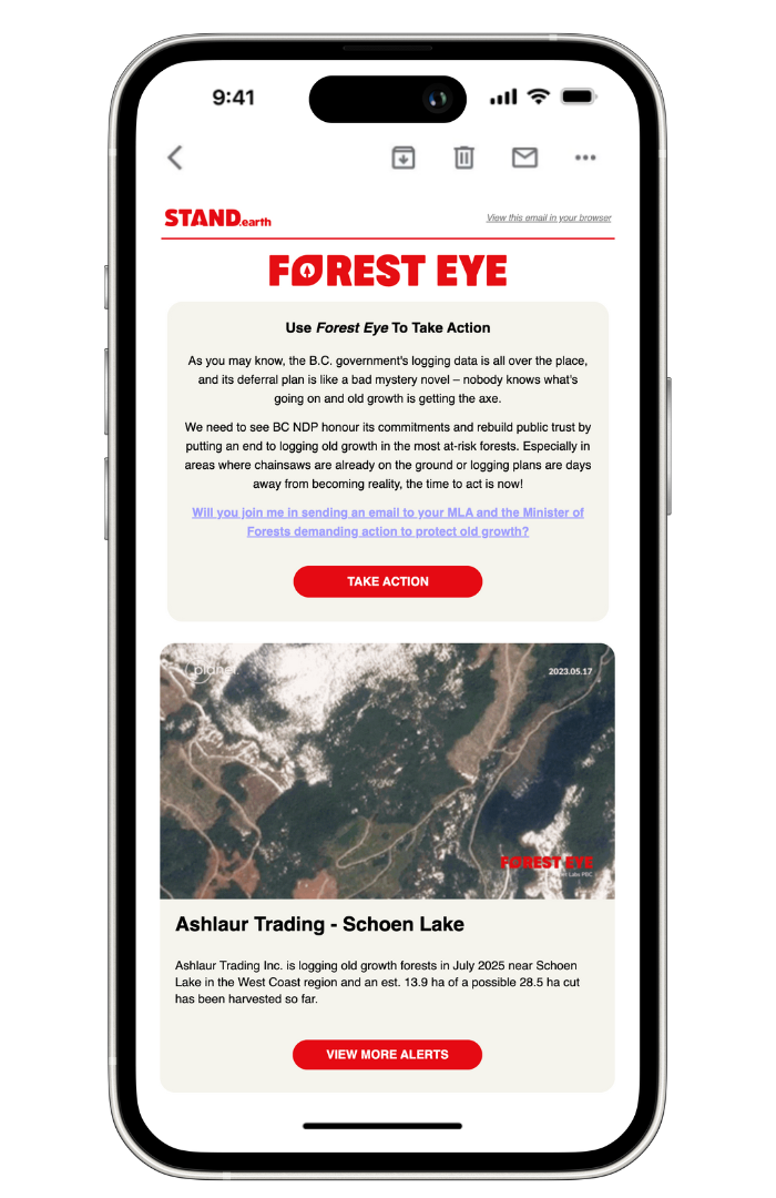 Never miss an alert for new road-building or logging in old growth forests across B.C. Subscribe to receive regular emails to your inbox.